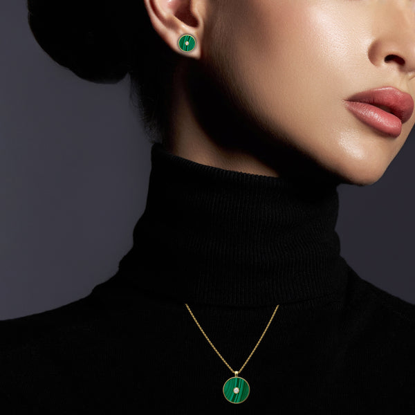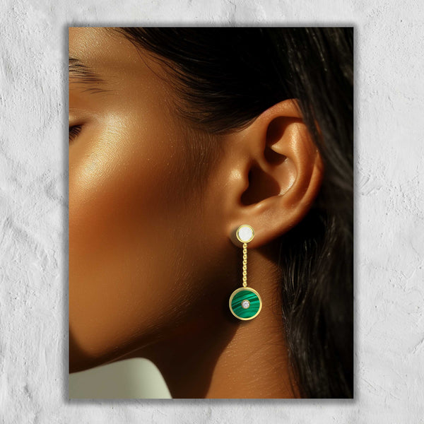 MALACHITE, DIAMOND & MOTHER OF PEARL Amulet Earrings
