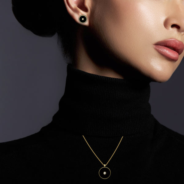 BLACK AGATE, DIAMOND & MOTHER OF PEARL Amulet Earrings