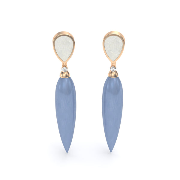 MOTHER OF PEARL, DIAMOND & LAPIS LAZULI Teardrop Earrings