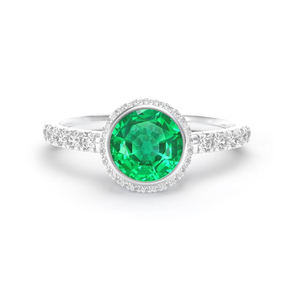 ROUND EMERALD & DIAMOND BEZEL SET Ring