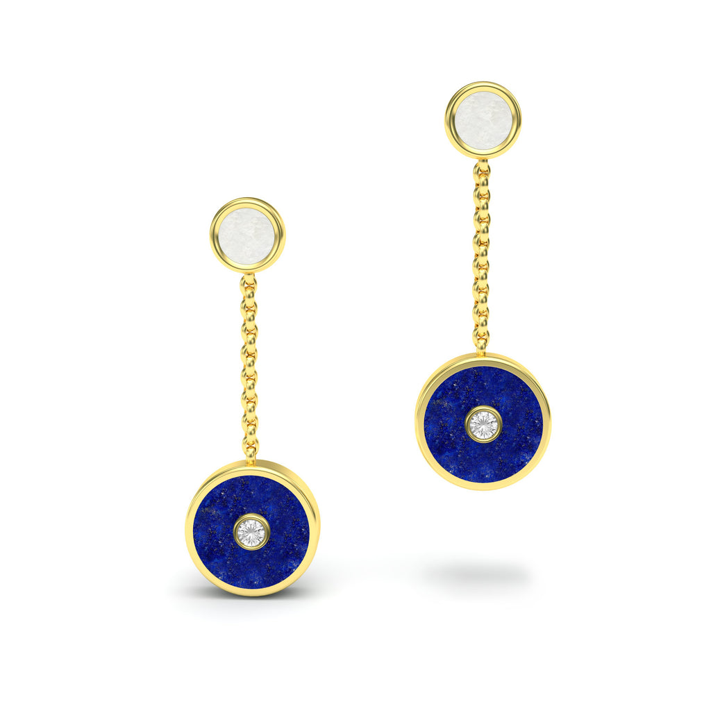 LAPIS LAZULI, DIAMOND & MOTHER OF PEARL Amulet Earrings