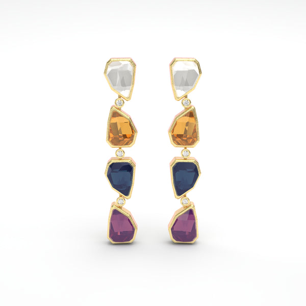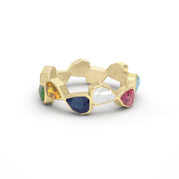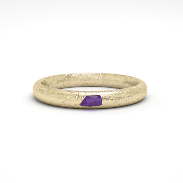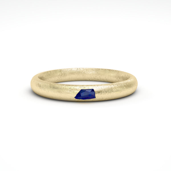 Round Sapphire & Diamond Trilogy Raw Gold Ring