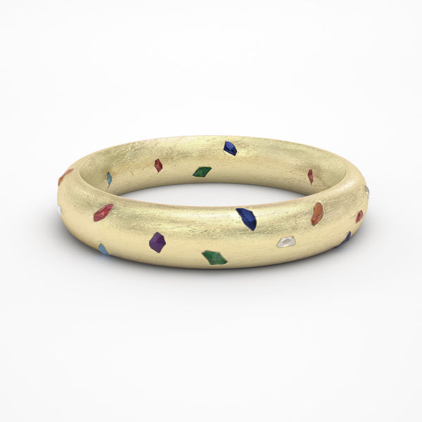Round Emerald & Diamond Trilogy Raw Gold Ring