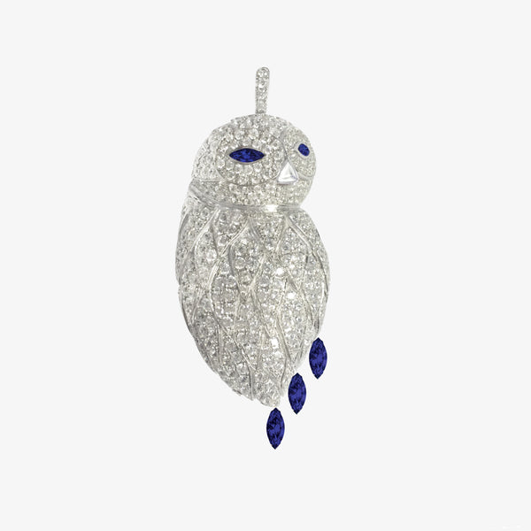 DIAMOND & SAPPHIRE SNOWY OWL NECKLACE