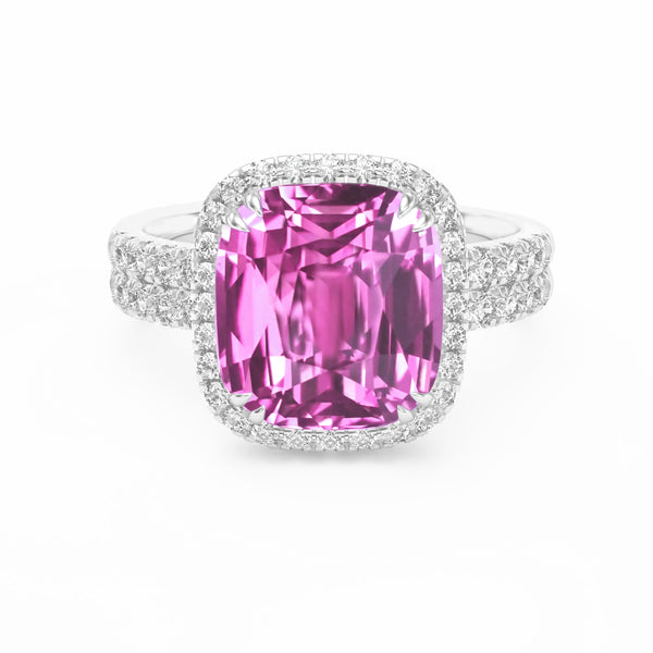 CUSHION PINK TOURMALINE & DIAMOND BAGUETTE Ring