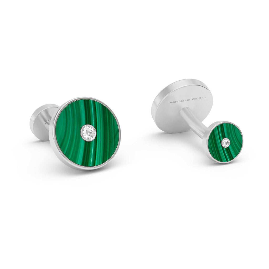 Malachite & Diamond Round Cufflinks