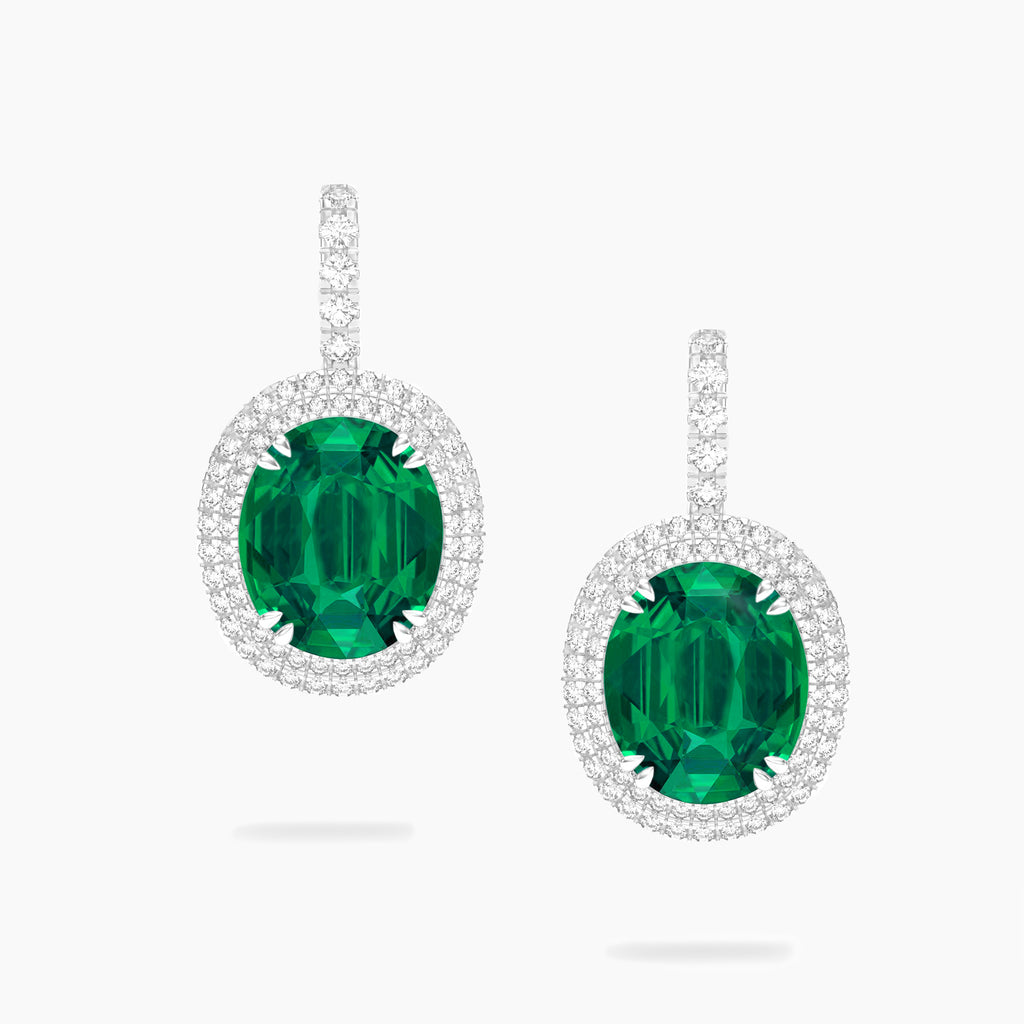 OVAL EMERALD & DIAMOND DROP Earrings