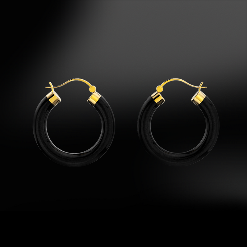 BLACK AGATE Hoop Earrings