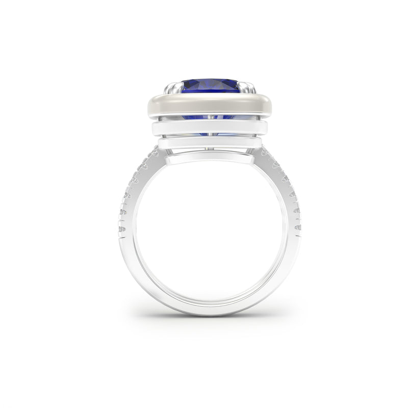Cushion Sapphire & Diamonds Resin Bezel Ring
