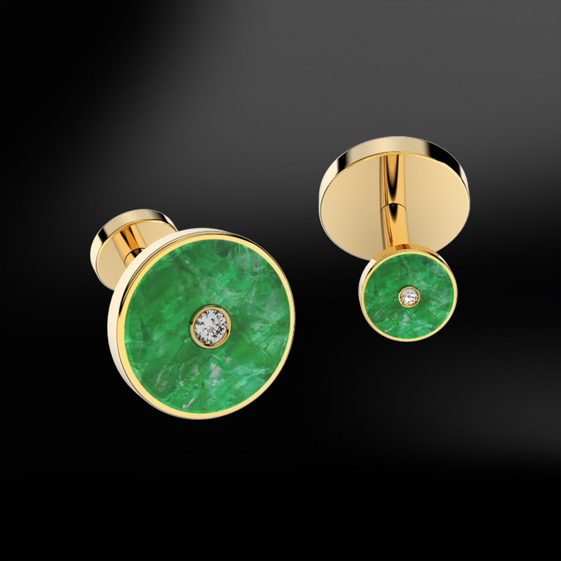 Jade & Diamond Round Cufflinks
