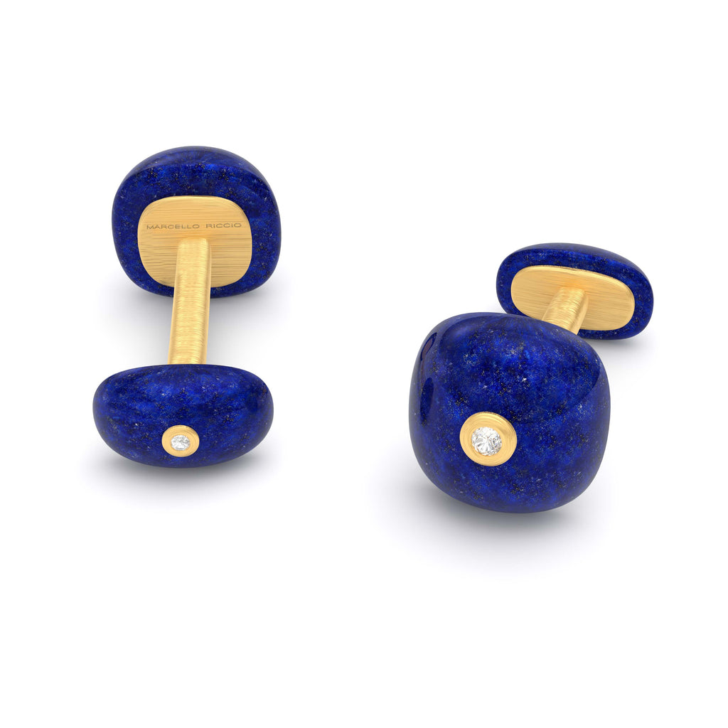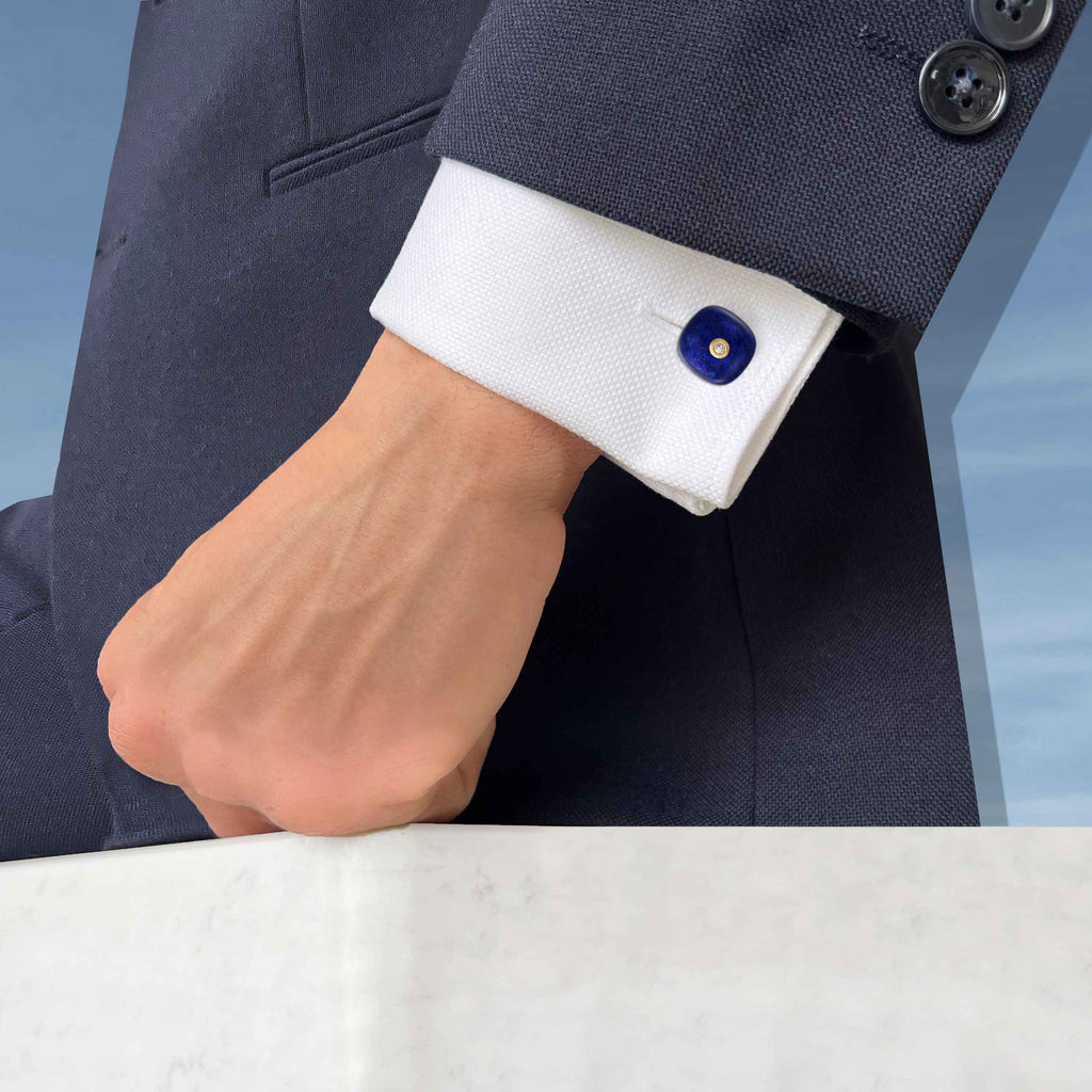 Cabochon Lapis Lazuli & Diamond Round Cufflinks