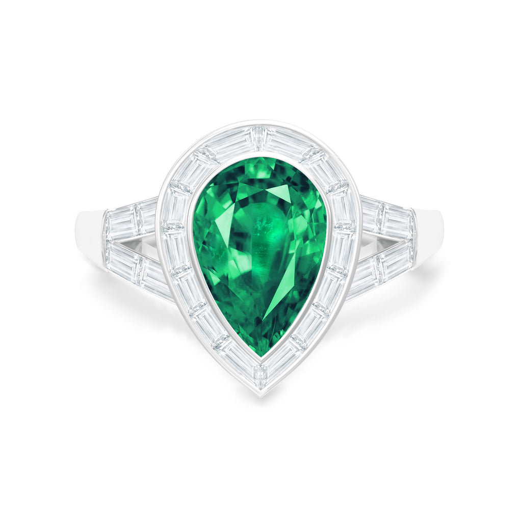 PEAR EMERALD & DIAMOND BEZEL SET Ring