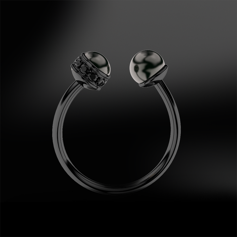 CABOCHON BLACK TOURMALINE, DIAMOND & PEARL Ring