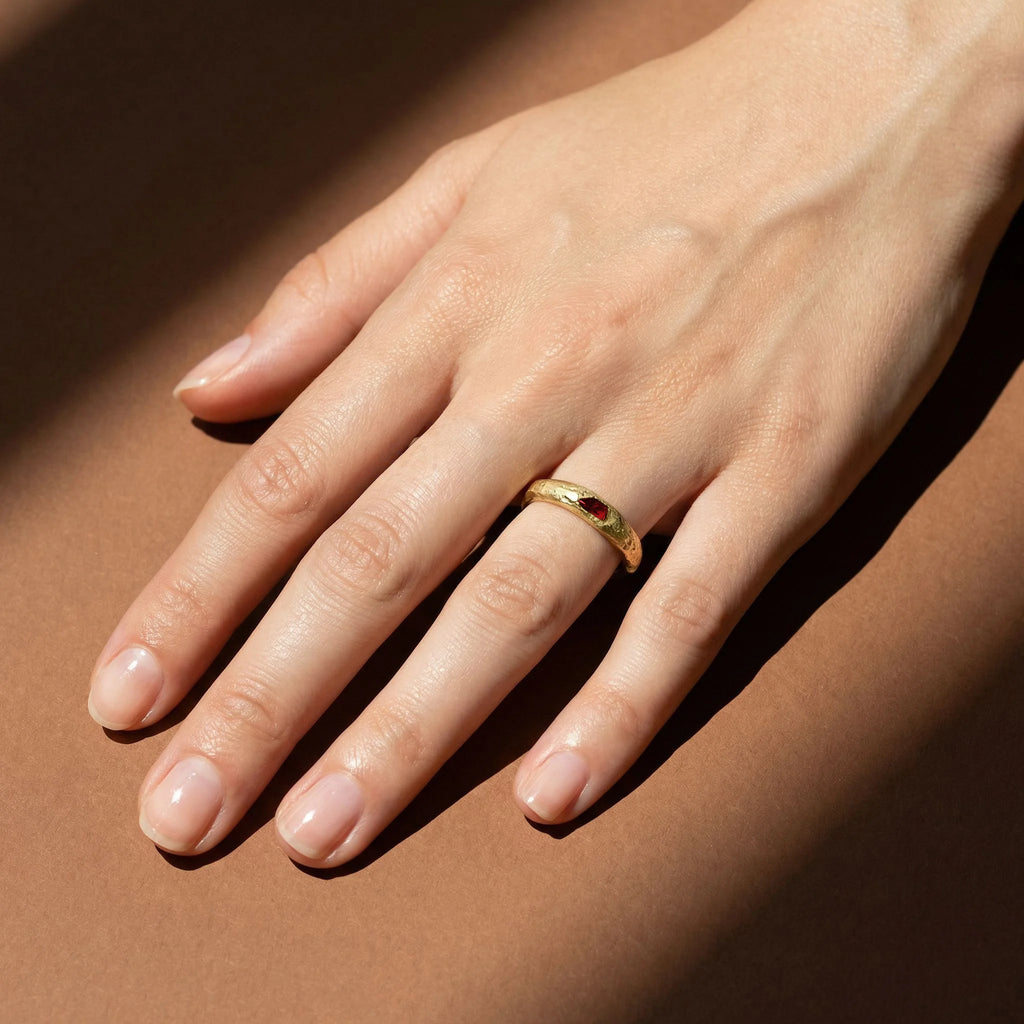 Raw Ruby Solitaire Ring in 18ct Textured Gold