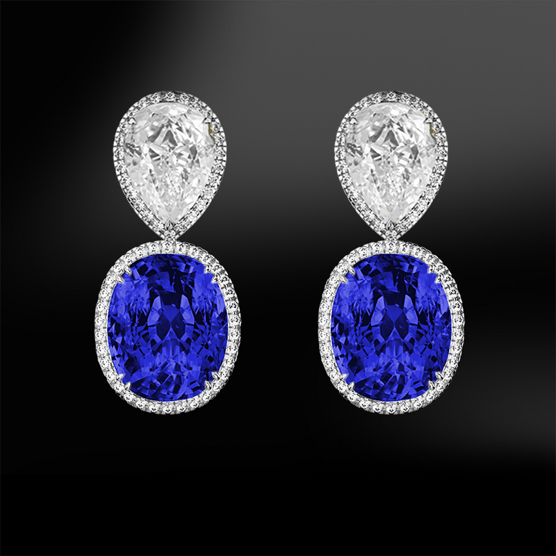 OVAL SAPPHIRE & PEAR DIAMOND Earrings